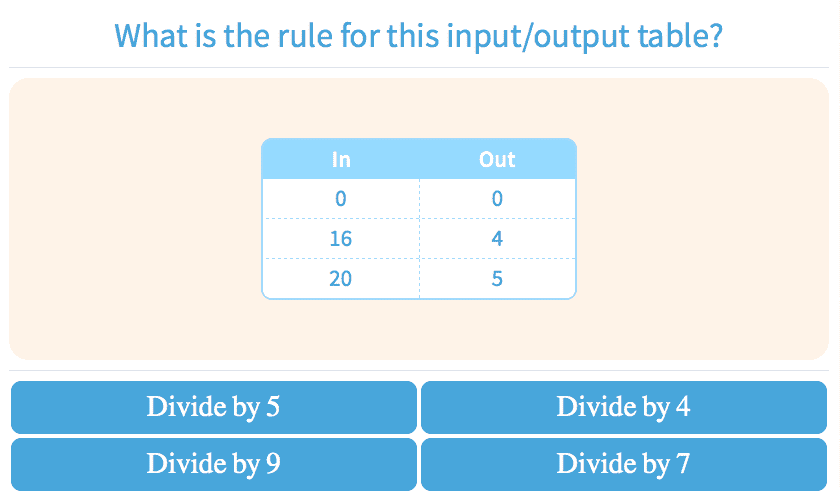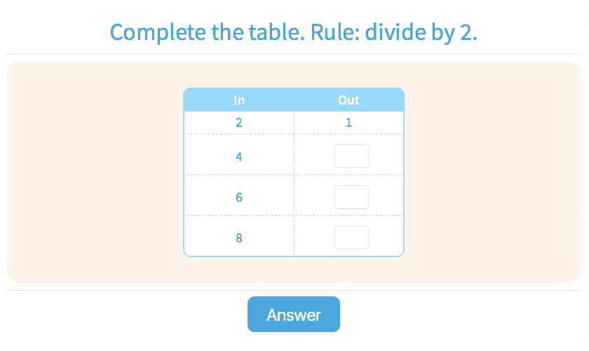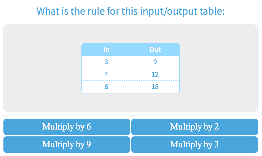 3.57Multiplication Input/Output Tables: Find the Rule/