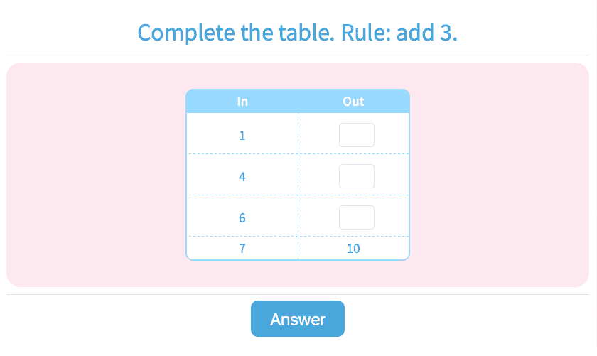 3.83Addition Input/Output Tables with Numbers Up to 100/
